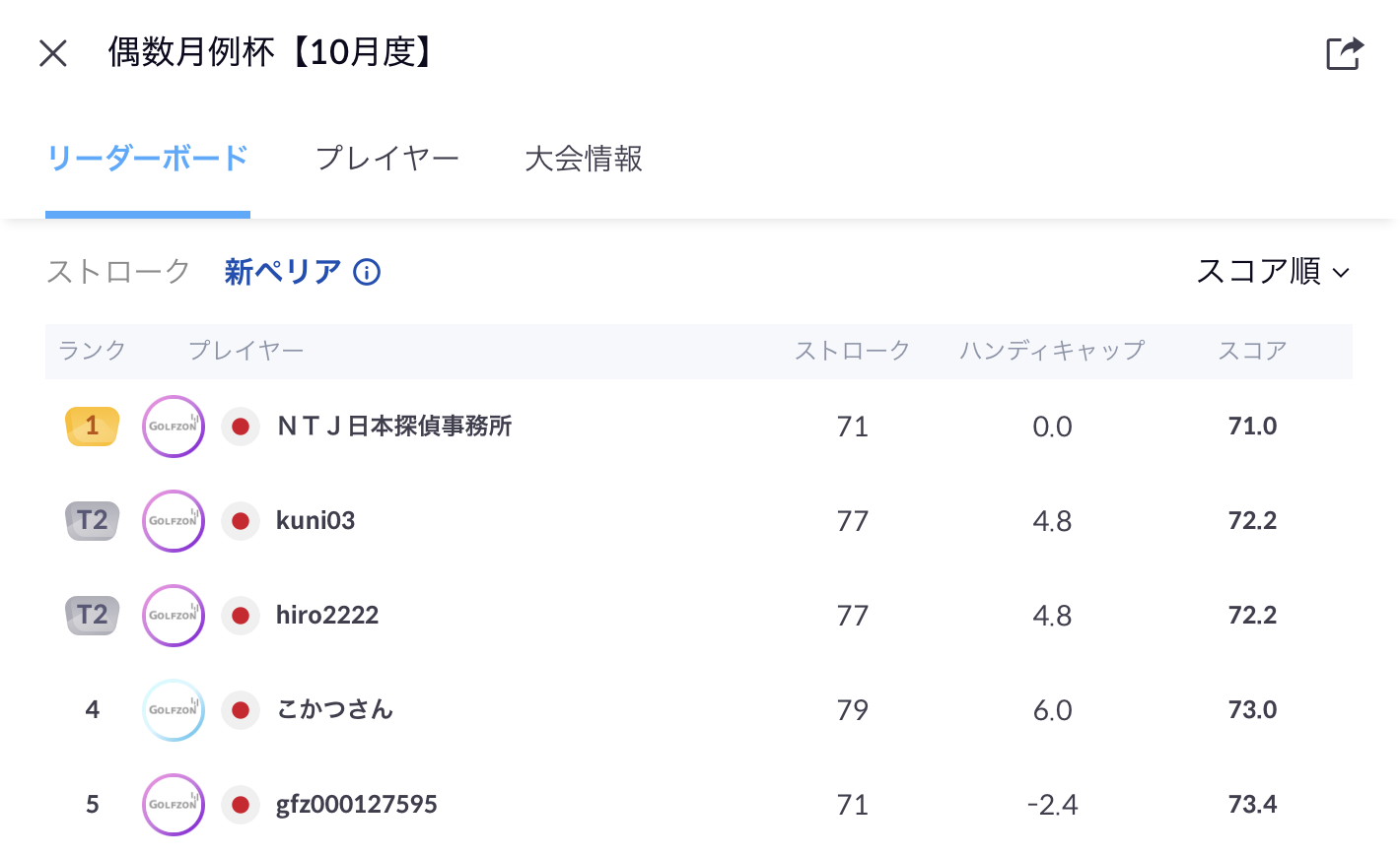 【10月度】偶数月例杯は「スコア1.2」の差で優勝が決定しました!!!!👏